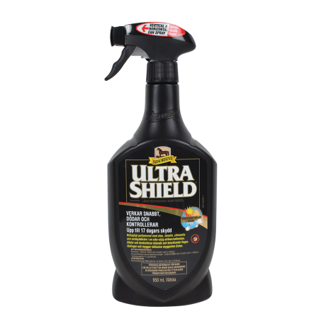 UltraShield från Absorbine är en högeffektiv och långvarig flugspray som skyddar hästar mot bitande och stickande insekter i upp till 17 dagar. Produkten är registrerad hos Kemikalieinspektionen.