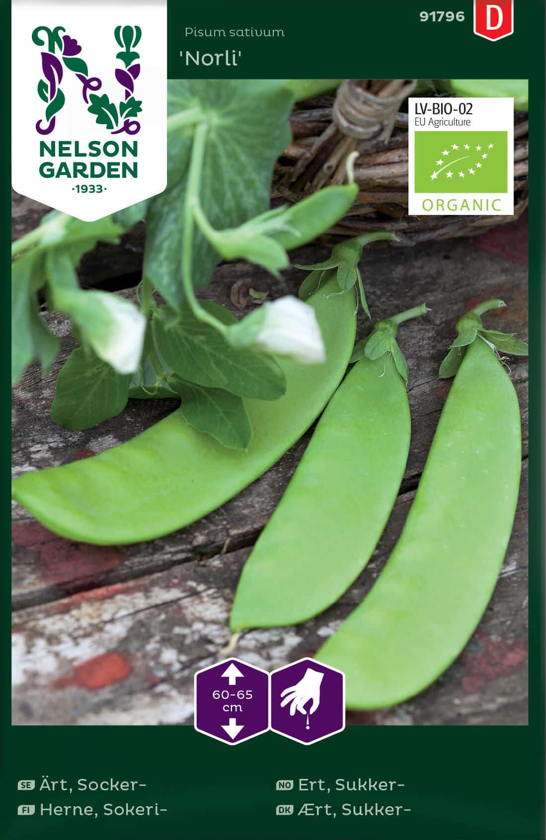 Denna lågväxande och snabba sockerärt ger små, goda ärtskidor. Den är perfekt att så tidigt på våren i växthus för att kunna skördas tidigt. Växten blir endast 60 cm hög och behöver bara enkelt stöd för att hållas upprätt. Egologiskt.