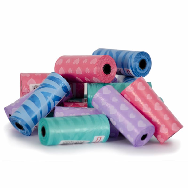 Färgglada och mönstrade bajspåsar av tunn men samtidigt hållbar kvalitet. Piggar upp på hundpromenaden och är perfekta att ha med sig i fickan eller i bajspåsehållarna av mjuk silikon. 20st/rulle. Utan handtag. 22x32cm. Kommer i osorterade färger.