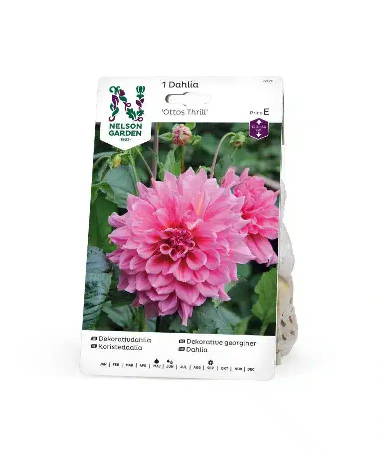 ’Otto’s Thrill’ imponerar med sina storslagna blommor i ”dinner plate-storlek” som verkligen fångar uppmärksamheten. De vackra aprikosrosa blombladen står stabilt på långa stjälkar, vilket gör dem till perfekta snittblommor. Plantan når en höjd på 120-150 cm.