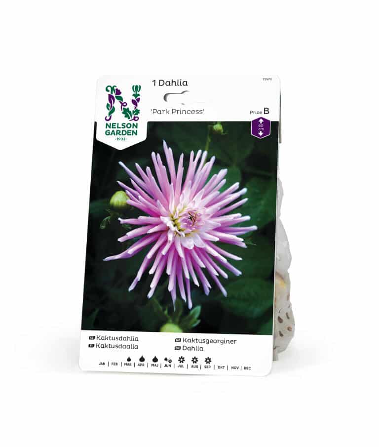 En låg kaktusblommande dahlia på ca 60cm med en så intensiv blomprakt att den nästan döljer bladverket. De rosa, ihoprullade kronbladen har ljusa spetsar, vilket ger ett vackert intryck. Den är mycket dekorativ både i en fin kruka och i grupper i rabatten.