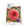 En klassisk dekorativdahlia, underbar till snitt med mörka stjälkar och smakfulla färger. De rosa strimmorna på kronbladen får med tiden en något djupare färg. En sommarens läckerhet i rabatt och bukett. Plantan blir 90 cm hög.