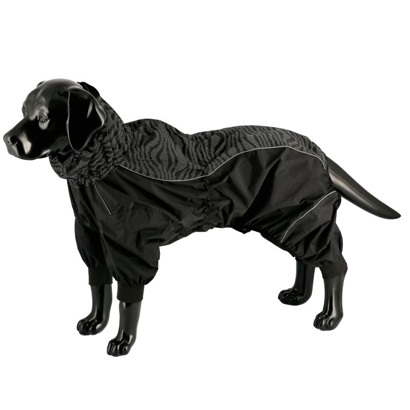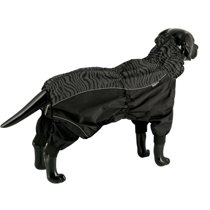 Vattentätt (3000mm) overall med tejpade sömmar. Overallen skyddar mot regn och blåst. Reflekterande mönster längs hela ryggen. Justerbar halsöppning, krage och midja. Stängs med hjälp av dragkedja längs ryggen.