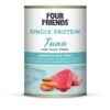 FourFriends Single Protein våtfoder är utformat för att passa alla vuxna hundar, men det är särskilt anpassat för hundar med överkänslighet mot vissa ingredienser eller med en känslig mage. Vårt recept är fritt från GMO, socker, soja, spannmål, onödiga tillsatser och kemiska konserveringsmedel. Vi använder endast en animalisk proteinkälla, vilket gör det enklare att välja produkten för hundar med känslig mage eller överkänslighet.