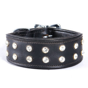 Läder, med 2 rader stora stenar. Mjukfodrat och med nylonförstärkningar.