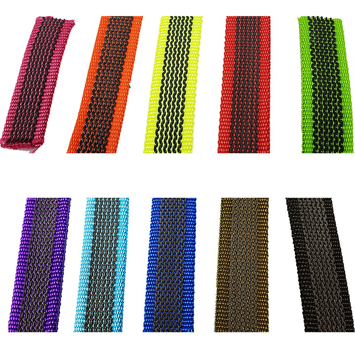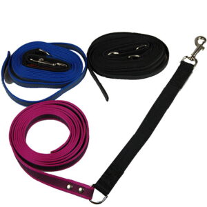Påviskoppel i supergrip/antiglid/gummerat band med expander. Kopplet är 3 meter långt och 20mm brett. Inget handtag (går givetvis att knyta/sy själv om man vill). Gummeringen gör att du får ett bättre tag och kopplet är skönt att hålla i. Närmast haken är det en del med kraftig expander ca 40 cm. Expandern gör att du och hunden slipper ryck.