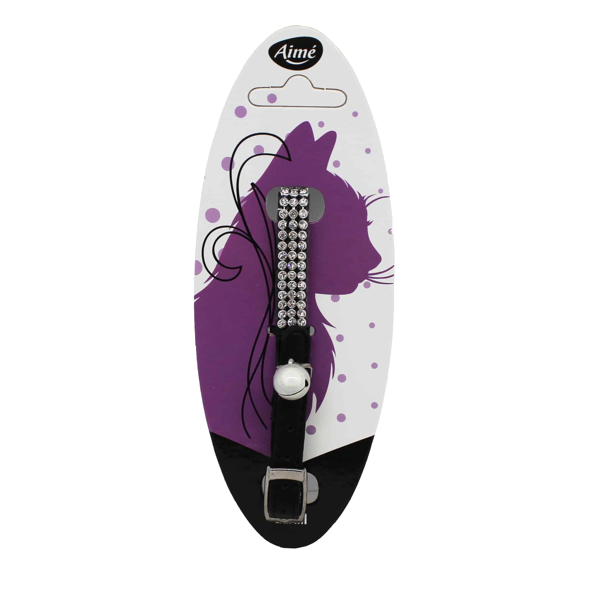 Katthalsband med elastiskt band och bjällra. Med vacker strass.