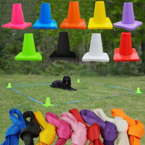 Komplett ruta med 4 koner och rutband i nylon, 3x3meter. Färdig att sätta upp för träning och tävling. Bandet fäster du enkelt i konerna. Bandändarna sitter fast i en kon, så allt är på plats.
