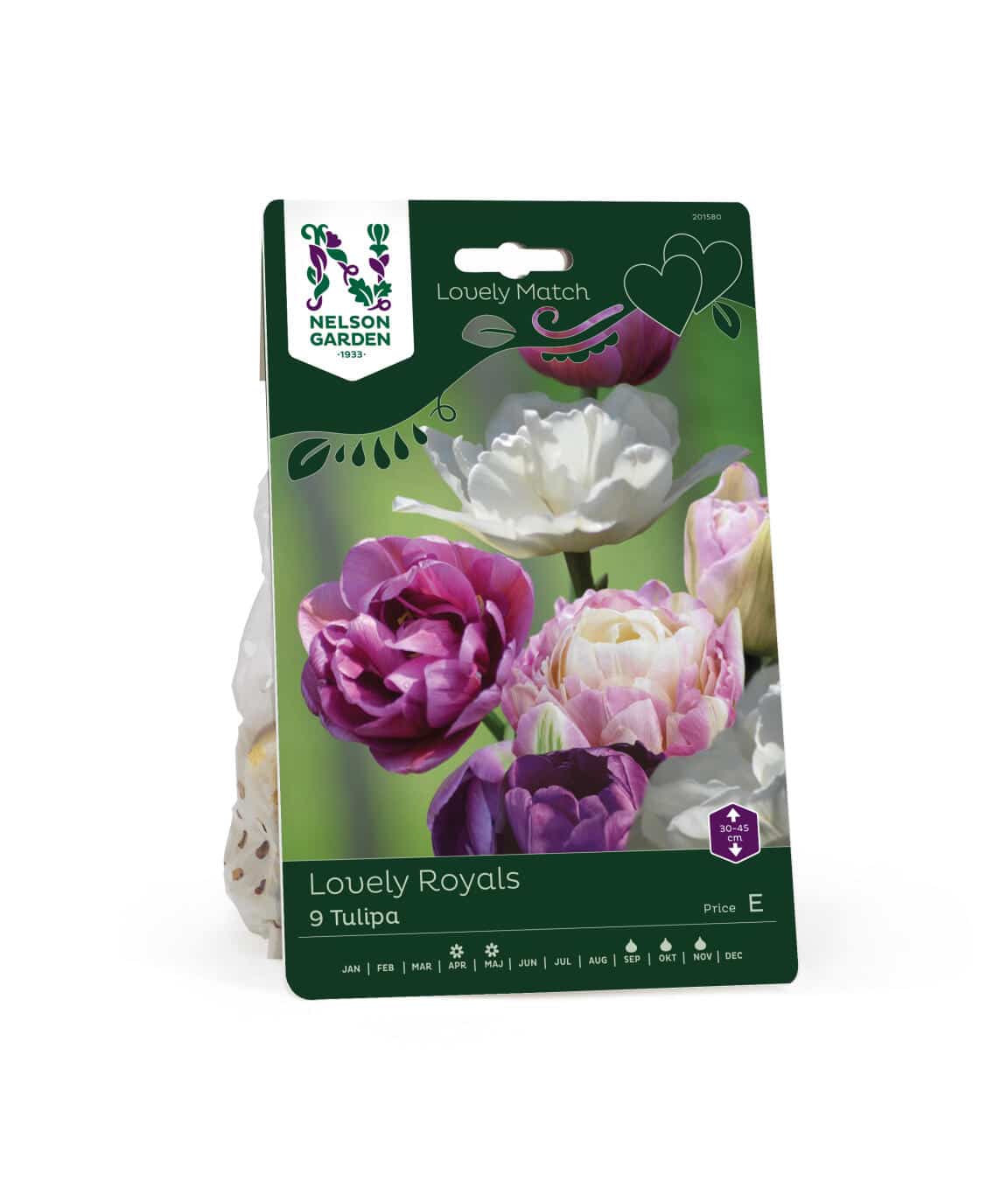 ’Lovely Match Lovely Royals’ är en exklusiv tulpanmix med stadiga stjälkar och eleganta blommor i kungliga nyanser av lila, rosa och vitt. Den består av sorterna ’Mondial’, ’Sweet Desire’ & ’Blue Diamond’. Den passar perfekt i rabatter, grupper eller som snittblomma och ger trädgården en lyxig vårkänsla.