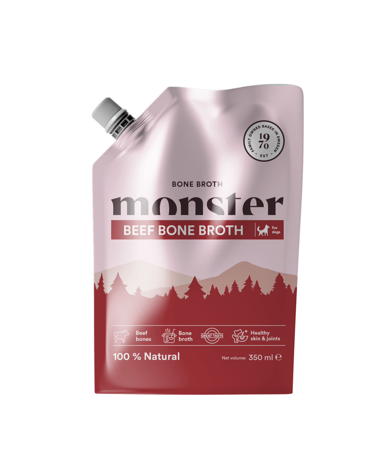 Monster benbuljong är det lilla tricket som gör stor skillnad – både för smaken och för välmåendet. Den håller vätskebalansen på topp, är naturligt fettsnål och proppad med nyttigheter som kollagen, hyaluronsyra och glukosamin – för mjuka leder, frisk hud och en päls som glänser som aldrig förr.