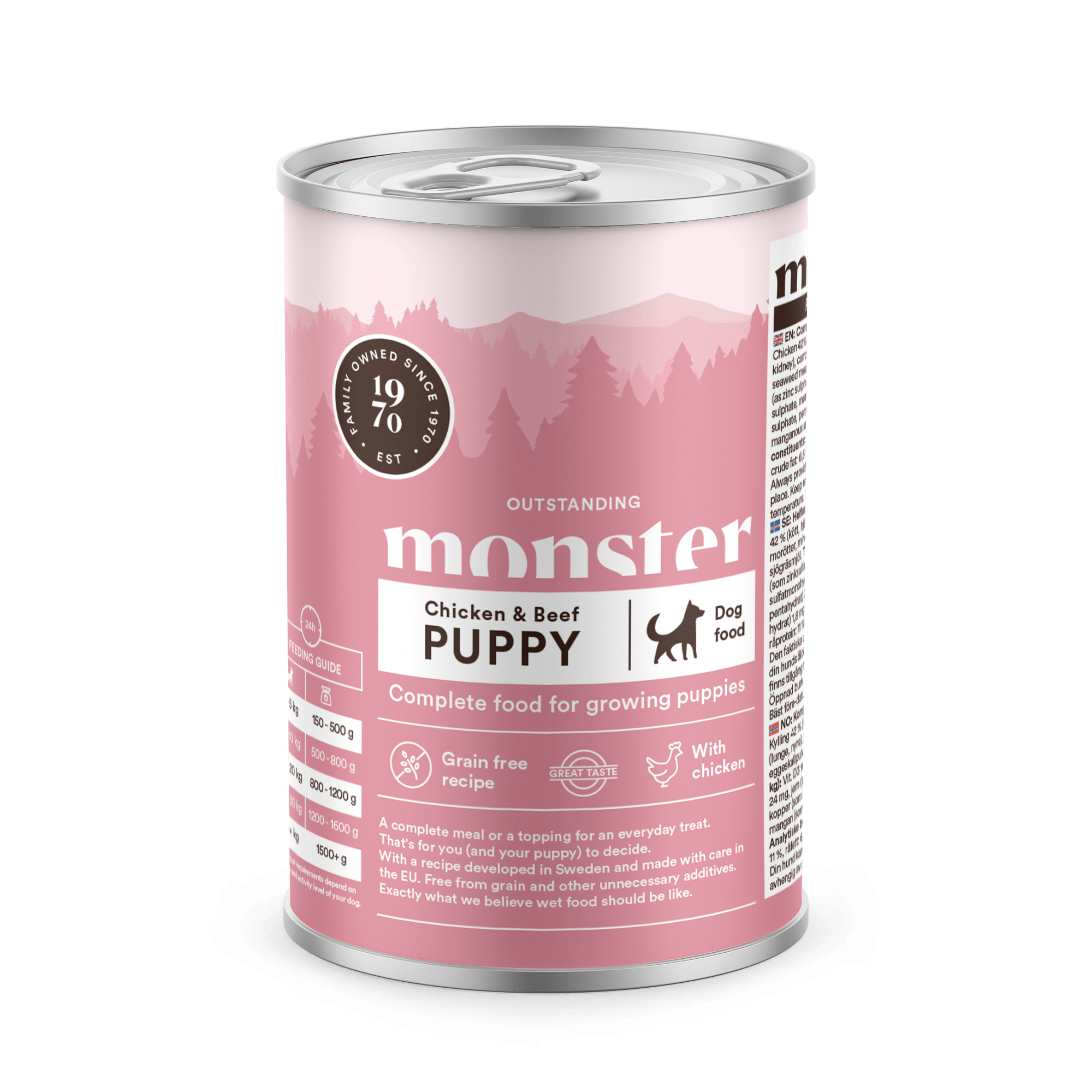 Kött- och proteinrik blötmat med delikat kyckling och nötkött. Funkar som komplett måltid eller bara lite guldkant i vardagen – alla valpar kan må bra av blötmat. Med recept framtaget i Sverige och noggrant utvalda ingredienser. Garanterat fritt från spannmål, utan tillsatt socker och andra onödiga tillsatser. Precis så som vi tycker att blötmat till din valp ska vara.