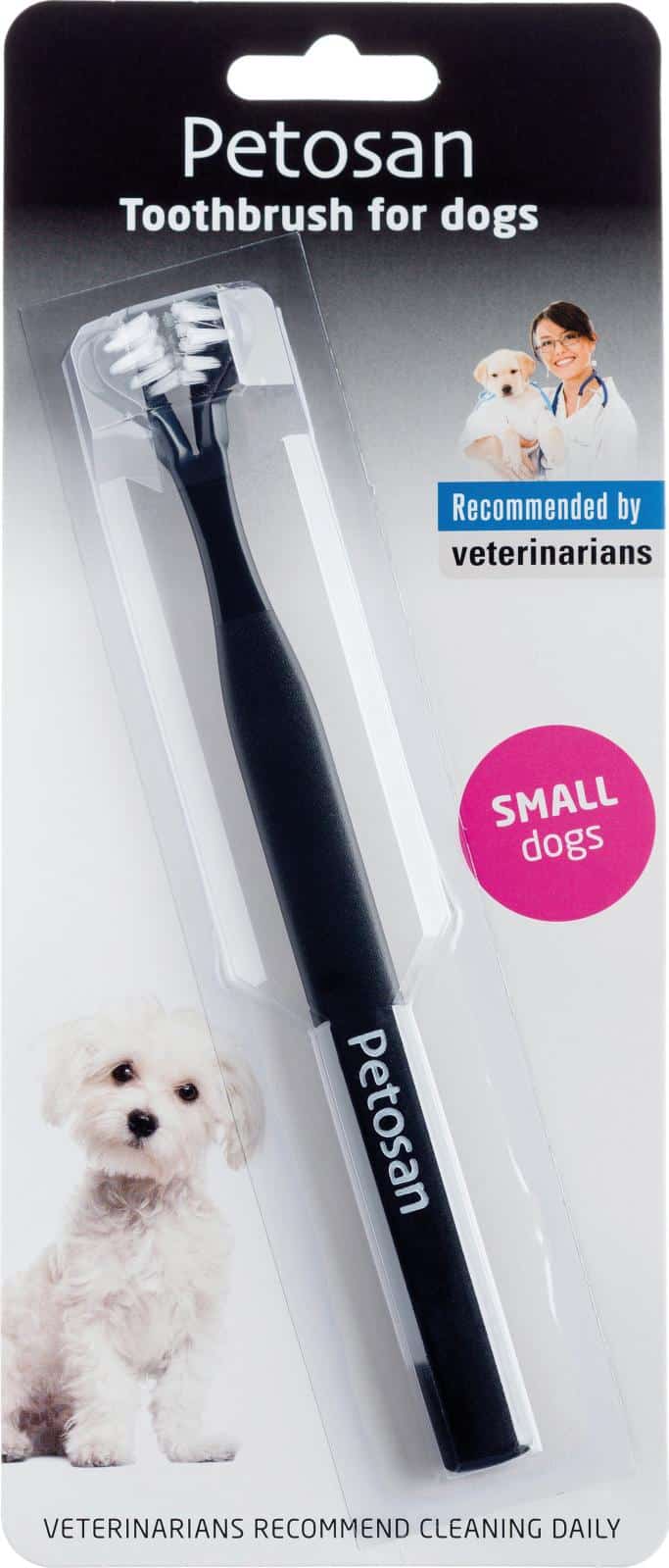 Petosan dubbelsidig tandborste för hundar.