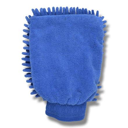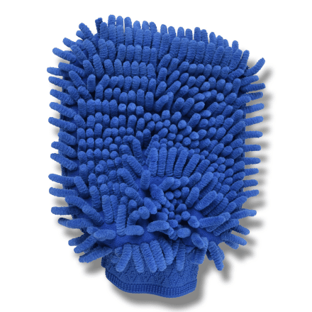 En blå putsvante med resår vid handleden. Tar av det sista omöjliga dammet ifrån hästen!