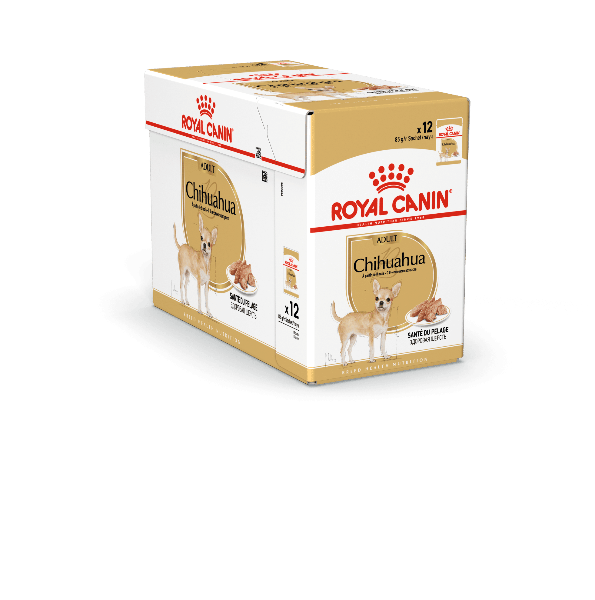 ROYAL CANIN® Chihuahua Paté (Loaf) är ett komplett våtfoder anpassat för chihuahua från 8 månaders ålder. Receptet är särskilt framtaget för att möta den vuxna chihuahuans specifika näringsbehov och stödja hälsa och välbefinnande i vardagen.