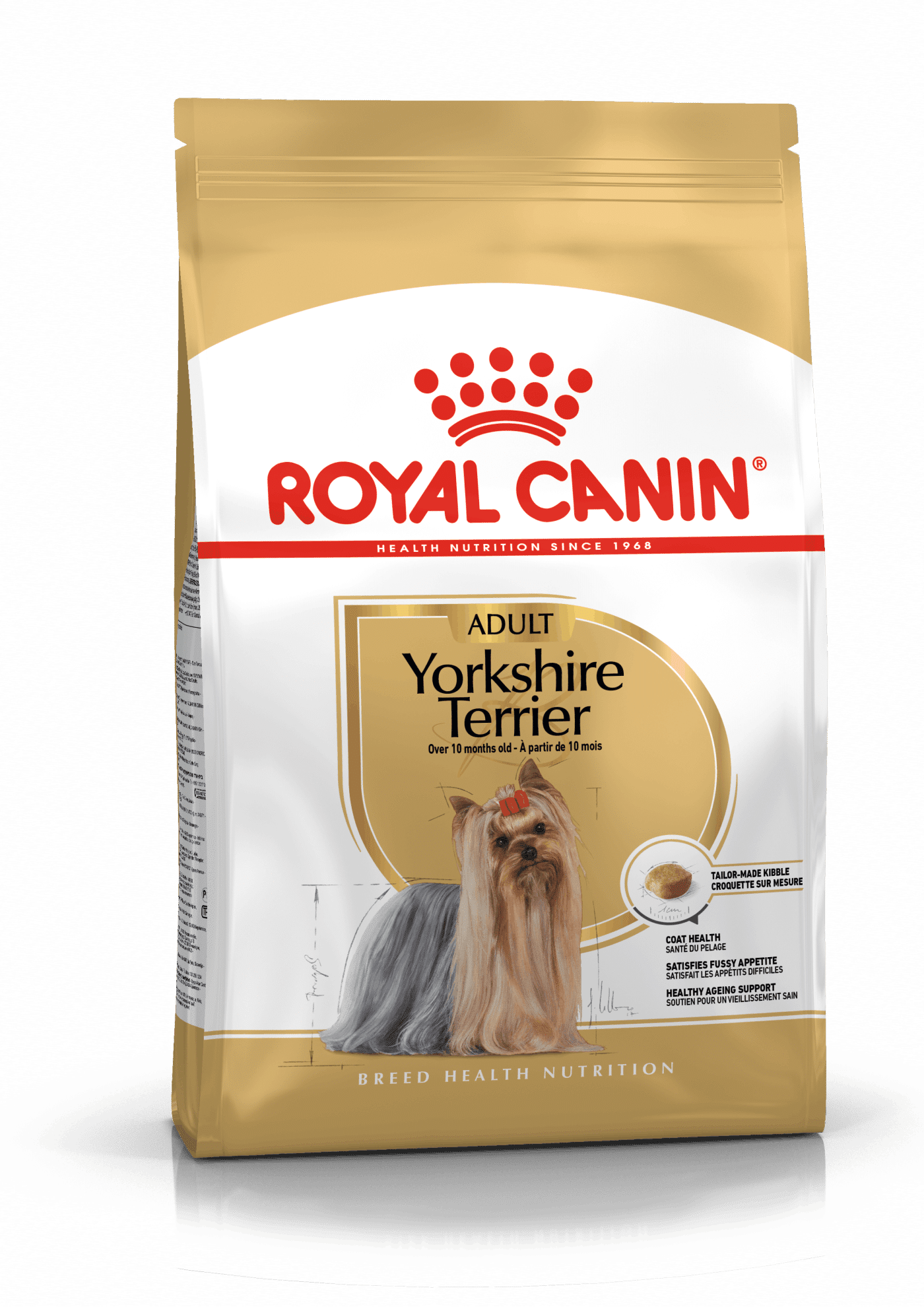 ROYAL CANIN® Yorkshire Terrier Adult-torrfoder är lämpligt för yorkshire terriers som är 10 månader eller äldre. Detta helfoder är speciellt utvecklat med din vuxna hunds hela näringsbehov i åtanke. Yorkshire Terrier Adult-foder bidrar till att bibehålla din yorkies hälsosamma päls genom ett anpassat innehåll, berikat med essentiella Omega 3-fettsyror (EPA och DHA), Omega 6-fettsyror, boragoolja och biotin. Det tillfredsställer även hundar med den mest kräsna aptit, detta tack vare en kombination av exceptionella aromer som din hund inte kommer att kunna motstå! Det är viktigt att ha god munhygien i åtanke när du väljer din hunds foder. ROYAL CANIN® Yorkshire Terrier Adult bidrar till att sakta ner bildandet av tandsten genom inkludering av kalciumkelatorer i torrfoderbitarna. För att tillgodose alla hundars individuella preferenser finns ROYAL CANIN® Yorkshire Terrier Adult även som våtfoder i en mjuk och välsmakande paté. Om d vill maximera hälsofördelarna och använda blandad utfodring behöver du bara följa riktlinjerna i vår foderguide för att säkerställa att din hund får rätt mängd våt- och torrfoder.