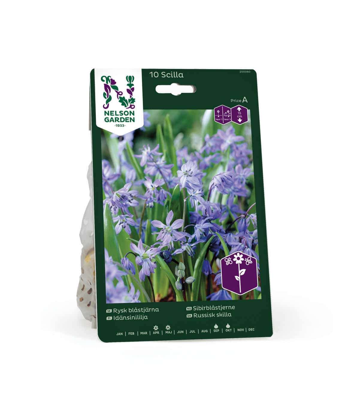 Rysk Blåstjärna är en charmig vårlök med klara blå, stjärnformade blommor på smala, stadiga stjälkar. Den passar utmärkt i rabatter, under buskar eller i grupper, och ger trädgården ett tidigt vårtecken.