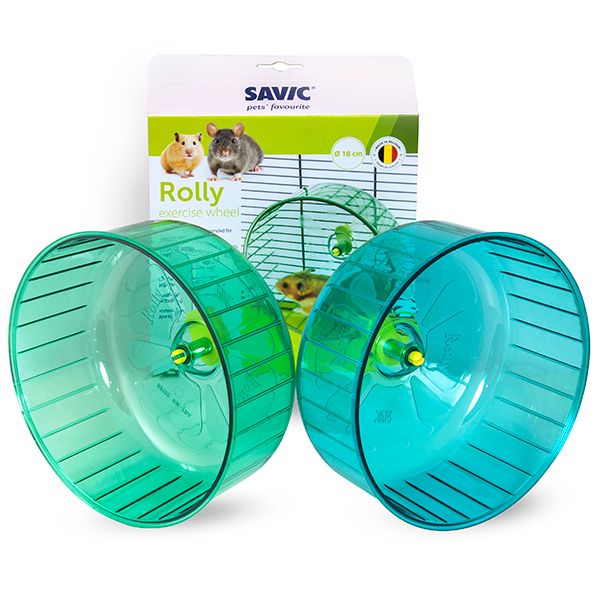 Springhjul till dvärghamster, mus. Säker modell utan klämrisk. Hjulet bör vara en sysselsättning bland många i buren för att undvika överdriven användning som kan tyda på stress. Fästs i galler eller på artikel 985228. Levereras i någon av färgerna på bild.