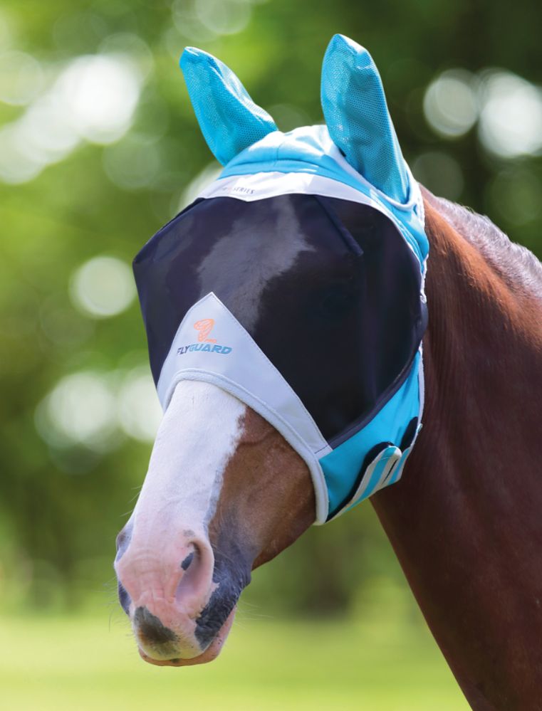 Shires flughuva med perfekt passform. Elastisk nacke, två knäppen runt ganascherna. Vadderad insida minskar risken för skav. Vecken vid ögonen frigör att materialet kommer i kontakt med hästens ögon.