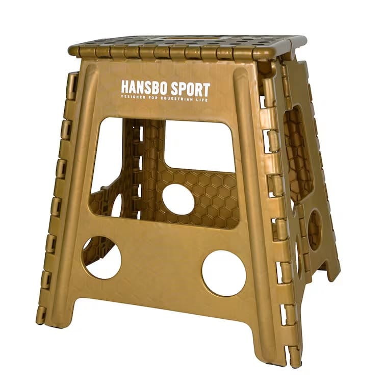 En smidig ihopfällbar stallpall tillverkad av plast.
