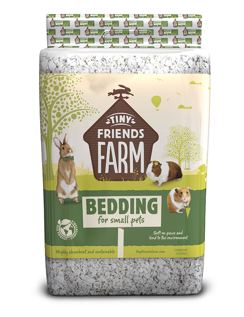 Tiny Friends Farm bedding för smådjur är en miljövänlig produkt. Den är mjuk för djurens tassar och snäll mot vår miljö. Tiny Friends Farm bäddmaterial är dammfri och högabsorberande och efter användandet så är den komposterbar.