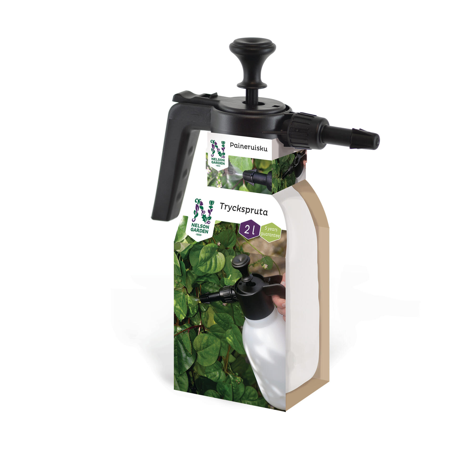 Tryckspruta av hög kvalitet för vatten eller bekämpningsmedel. Graderad behållare, avtryckare som kan spärras och steglöst justerbart munstycke från stråle till vätskedimma. 2 liter. 5 års garanti.