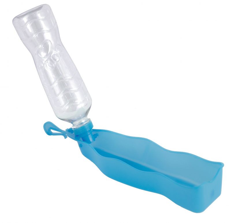Smart vattenflaska och vattenskål i ett. Perfekt att ha med sig när man är på språng. Skålen fäller man enkelt ner och låtar hunden dricka ur. Passar cykelflaskhållare. Handdiskas.